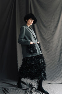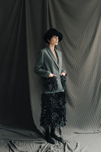 BLACK FRINGE PENCIL SKIRT