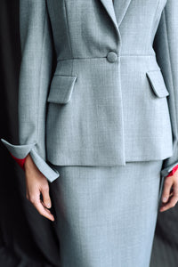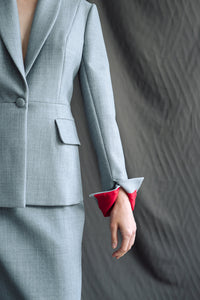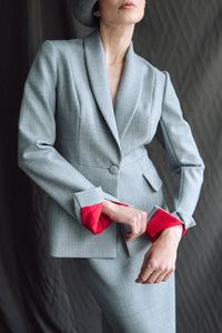 GREY FITTED WOOL BLAZER WITH RED LINING