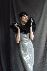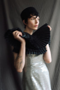 BLACK PLEATED SILK TAFFETA OVERLAY