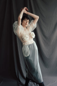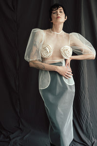 SHEER ORGANZA MIDI DRESS WITH ROSES