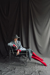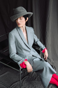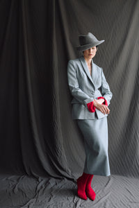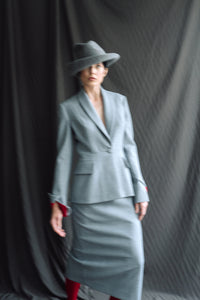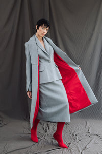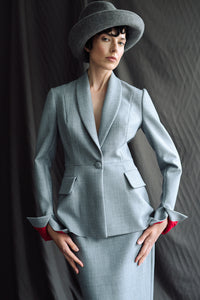 GREY FITTED WOOL BLAZER WITH RED LINING