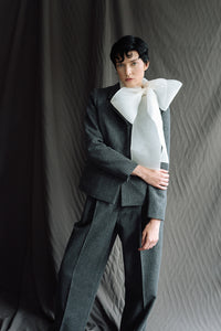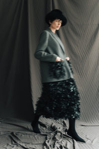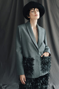 OVERSIZED GREY WOOLD BLAZER WITH FRINGE POCKETS